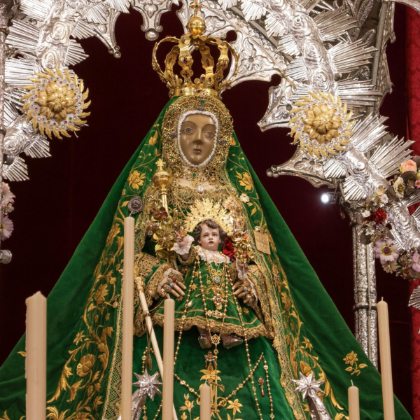 Eso es lo que vemos en la trasera del manto y en los elegantes picos que, a modo de ikebana bordada, nos ofrecen los paños delanteros y el jubón o saya de la Virgen. Rematados por la azucena que no en balde es el símbolo más antiguo de la pureza y virginidad, atributos de Nuestra Señora.