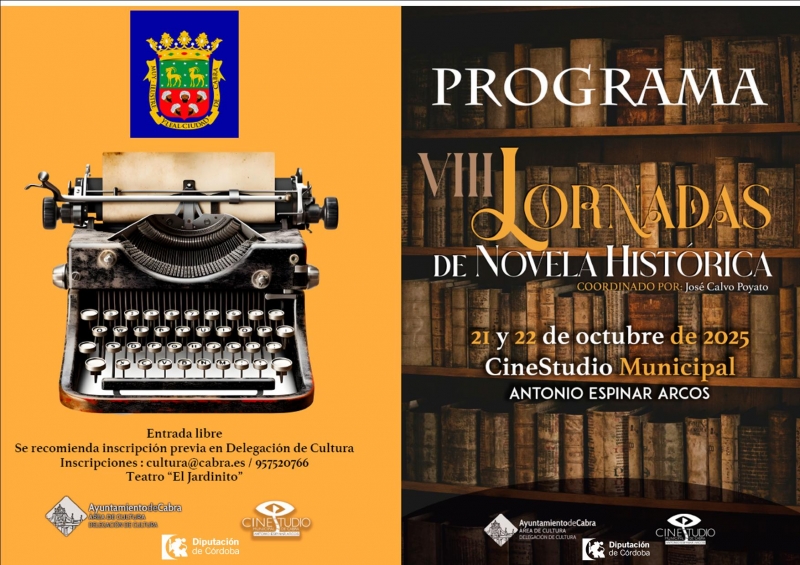 Los próximos 21 y 22 de octubre la ciudad de Cabra vuelve a posicionarse como referente en el ámbito literario nacional con motivo de la octava edición de las Jornadas de Novela Histórica, una cita que organiza la Delegación de Cultura del Ayuntamiento con la coordinación del escritor e historiador egabrense, José Calvo Poyato, y que "se está convirtiendo en una propuesta imprescindible dentro de nuestro calendario cultural", ha afirmado la responsable de esta Área municipal, M. Sierra Sabariego.