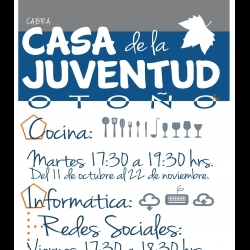 Durante este último trimestre de 2016, la Casa de la Juventud de Cabra, acogerá las actividades del Otoño joven, organizadas por la delegación municipal de Juventud de la Ayuntamiento de Cabra. Talleres, sala de ocio y asesoramiento en diversos ámbitos marcan un diverso programa dirigido a la juventud egabrense.
