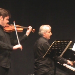 Aunque a Beethoven no hay que elevarlo a ningún sitio, el pasado día 27 los egabrenses Carlos Rafael Martínez Arroyo, violinista y José García Moreno, pianista se encargaron de llevarlo "al séptimo cielo" con la espléndida interpretación de un Concierto en el que hicieron una exhibición con dos de sus sonatas para violín y piano, en el Teatro "El Jardinito" de Cabra, que rozó el lleno y que enmudeció al escuchar el sonido de este dúo excepcional. No se oyó ni una mosca.