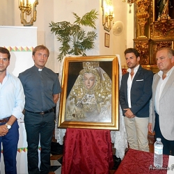 Se trata de una pintura sobre tabla de la Patrona de nuestra Ciudad ataviada con el manto de la Coronación Pontificia y recoge igualmente momentos tanto de la Coronación Pontificia como del descubrimiento de la primitiva imagen por parte de Fernando III el Santo. La obra es autoría del joven pintor sevillano Jonathan Sánchez Aguilera que cuenta en su currículum con obras pictóricas representativas de imágenes tan destacadas como la Esperanza Macarena o la Estrella de Sevilla