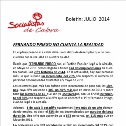 Así lo han dado a conocer en una comparecencia de prensa en la sede local del PSOE de Cabra en la que han estado presentes tanto la Secretaria de los Socialistas egabrenses, Teba Roldán y el Secretario de Empleo de la ejecutiva socialista, Manuel Aguilar. Según los socialistas, el Alcalde de Cabra está "de brazos cruzados" ante la "dramática" situación por la que están pasando muchos vecinos de la Ciudad y han afirmado que el desempleo, desde mayo de 2011 fecha en la que populares y andalucistas llegaron al Gobierno, se ha incrementado en un 20% hasta junio de 2014.