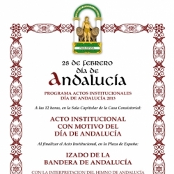 A las 12:00h tiene lugar en el salón de plenos del Ayuntamiento el acto institucional que con motivo del Día de Andalucía ha organizado el Ayuntamiento de nuestra ciudad. Al término del mismo se procederá al izado de la Bandera de Andalucía en la puerta de la Casa Consistorial con la interpretación del Himno a cargo de la A.I.M. Banda de Música de Cabra, que realizará un pasacalles (si el tiempo no lo impide).