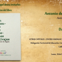 Antonio de Egipto Suárez Chacón acaba de publicar un nuevo libro de poemas, en el que evoca la infancia y lo hace reconstruyendo esa etapa mágica de la vida en la que "casi todo es posible". El nuevo poemario bajo el título Un tiempo de bosques salvajes y publicado por Depapel, ha sido presentado en la capital en el Centro Andaluz de las Letras y próximamente se presentará también en Cabra, lugar que aparece recreado en el libro a través de la poesía de Antonio de Egipto.