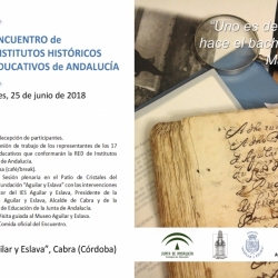 Este lunes, 25 de junio tendrá lugar en el Instituto y Fundación Aguilar y Eslava de Cabra (Córdoba) el I ENCUENTRO DE INSTITUTOS HISTÓRICOS EDUCATIVOS DE ANDALUCÍA, que contará entre otras autoridades con la presencia y participación de la Consejera de Educación de la Junta de Andalucía