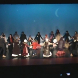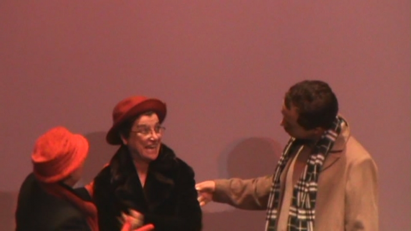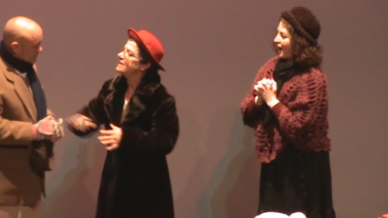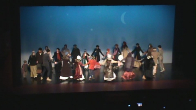 El comienzo de la comedia fue visualmente muy atractivo, con todos los componentes del Aula de Teatro, paseando y luciendo unas prendas de invierno muy acordes con la temperatura fría que dice la novela hacía.