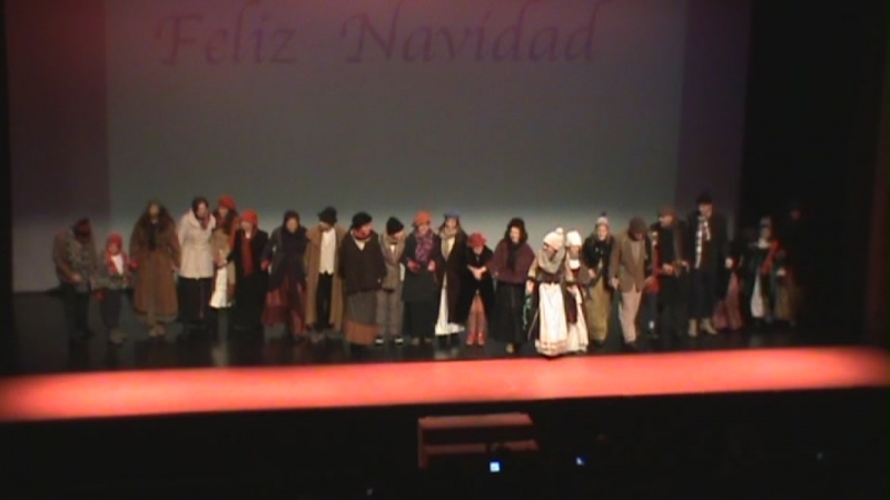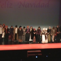 Al fondo en el telón apareció la frase FELIZ NAVIDAD que todos los participantes dijeron en voz alta, a los que menciono pues fueron parte de la magnifica representación, aunque intervinieran en papeles secundarios y en siluetas. Eran Victoria Fuentes, Antonio García, Isabel Godoy, Carmen Fuentes, Mario Osuna, Loli Ponferrada, Isabel Díaz y Cristina Ortiz muy conocidos porque en otras obras han participado como primeras figuras. Sin olvidar a los niños que también figuraron con tales, niños: Paula Jiménez, Inma Osuna, Sofía Martínez, Teo Estrada, Daniela Torres, Claudio Varela y David Sánchez.