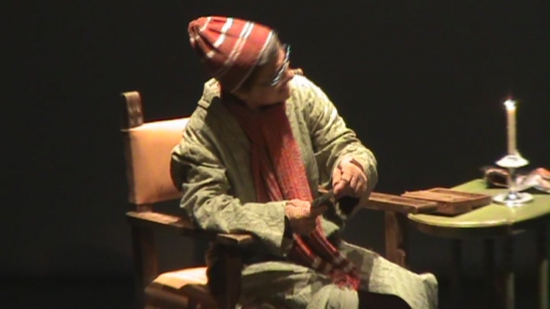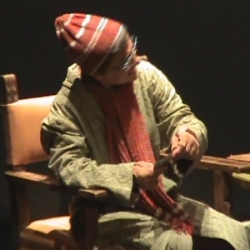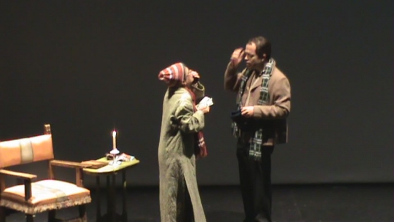 Y empezó la trama apareciendo en escena los dos primeros personajes, Scrooge y su escribiente Bob Cratchit, José Mª León, dentro de una escenografía minimalista, un sillón y una mesita con lámpara para Scrooge y un "bureau" para el oficinista, entablándose entre ellos un diálogo.
