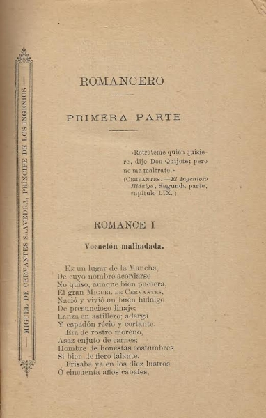 Iniciamos nuestra sección "Libro de la Semana" de este 2015 con una versión métrica de la inmortal obra de don Miguel de Cervantes Saavedra "El Ingenioso Hidalgo Don Quijote de la Mancha". Esta adaptación a verso octosílabo (el más antiguo de la poesía española, que ya aparecía en las jarchas y que se ha cultivado tanto en la poesía culta como en las coplas populares, cuya medida de ocho sílabas coincide con la unidad melódica más común en la elocución de nuestro idioma) se la debemos a Maximino Carrillo de Albornoz, escritor y dramaturgo español nacido en Málaga en 1828 y muerto en 1892. Bien es cierto que Carrillo indica que no pone en verso el Quijote, sino que se trata de un romancero del Quijote.