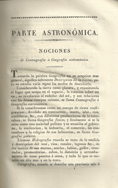 "Elementos de Geografía astronómica y física" escritos por Antonio de Montenegro (1828)