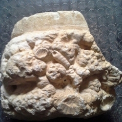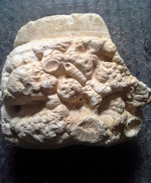 Como muchos de nuestros lectores conocen, Cabra en el Recuerdo realiza una especie de concursos a través de fotografías, en la que se intenta descubrir de qué lugar, edificio o personaje de nuestra ciudad se trata. En esta ocasión, nada se sabía de esta pieza que parece formar una especie de basa o capitel con tallas de diversos elementos naturales y marinos, como una venera, piñas o una garra. Está realizada en una especie de arenisca en tonos claros y es hueca por dentro.