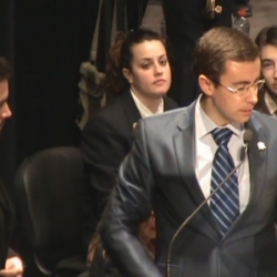 Salió de nuevo el presentador y dijo que había llegado la hora en que la banda interpretase por vez primera la marcha "Shalom".