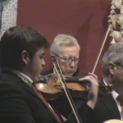 El chelista Antonio Peña Ruiz, no le quedó a la zaga y mostró también su buen hacer y perfección interpretativa en determinadas partes del concierto, sacándole un bello sonido a su instrumento.