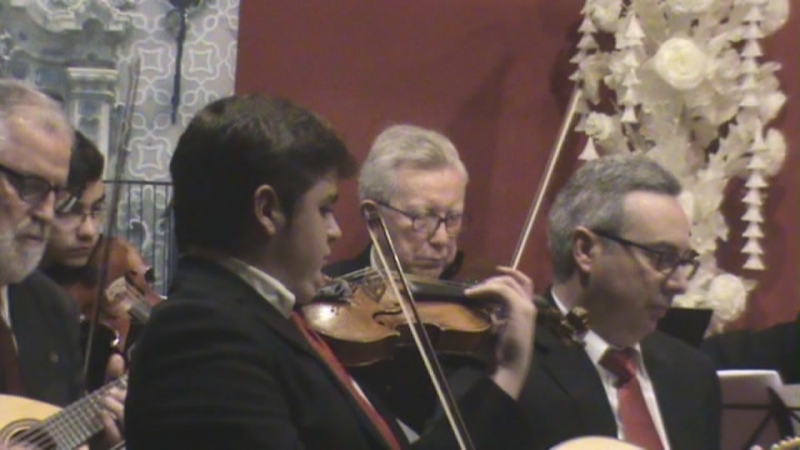 El concertino de la orquesta, el ya famoso violinista egabrense, Carlos Rafael Martínez Arroyo, que cumplía 16 años (está haciendo actualmente una "tournée" por Extremadura, con éxito total, como solista con la Orquesta OSCAM, de los conservatorios extremeños), hizo una exhibición en el concierto dando unas pinceladas preciosas a diversas marchas, que el público escuchó con admiración y disfrute, oyendo a su paisano actuar con su gran maestría.