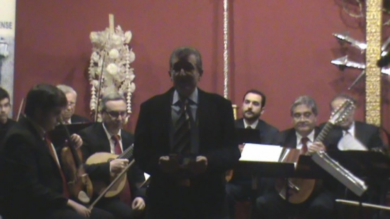 "Virgen de la Paz" (1970) de Pedro Morales Muñoz, natural de Lopera (Jaén (1923-) quien fuera director de la emblemática Banda del Regimiento "Soria" 9, que le antecedió en el cargo otro famoso compositor de marchas procesionales, Pedro Gámez Laserna y le sucedió Abel Moreno Gómez, hechos de la misma pasta. ¡Cuánta historia! Pedro Morales tiene una producción musical extensa, entre ella la música cofrade. Es una marcha muy melódica, alegre y el chelo hizo un precioso solo con los laúdes.
