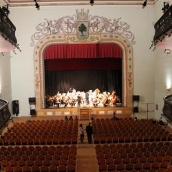 Como los conciertos han tenido todos el mismo formato, comenzaron con las palabras de presentación de Miguel Ángel Pulido, Coordinador del Proyecto, explicando en que consistía éste, cuales serían los directores que actuarían en cada obra, Alfonso Ramos Rodríguez y Rubén Rodríguez Rosado y que como figura estelar tendríamos la colaboración del extraordinario solista de violín, Carlos R. Martínez Arroyo, joven de 15 años, nacido en Cabra (Córdoba) que haría una exhibición de sus conocimientos con su instrumento. Explicó también cuales serían las obras que íbamos a escuchar. En las palabras de presentación de Cáceres, pidió y se hizo un minuto de silencio por las víctimas del reciente accidente de avión habido en los Alpes franceses, con el público puesto en pie finalizando con un fuerte aplauso.