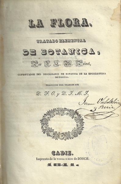 La Flora : tratado elemental de botánica / por J.L.M. Poiret ; traducido del frances por D.F.O. y D.J.M.J.-- Cádiz : [s.n.], 1841