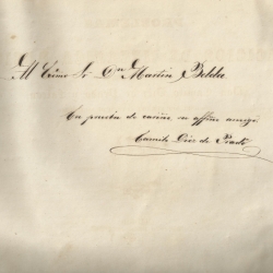 Ms.: "Al Exmo. Sr. Dn. Martín Belda. En prueba de cariño, su afftmo. amigo Camilo Díez de Prado".