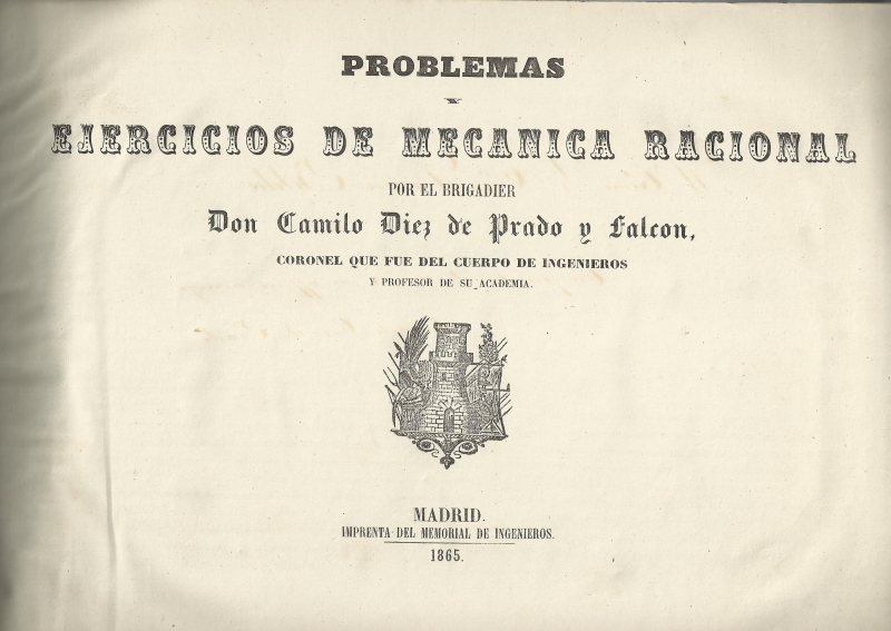 Problemas y ejercicios de Mecánica racional / por Camilo Díez de Prado y Falcón.-- Madrid : [s.n.], 1865 (Imprenta del Memorial de Ingenieros)