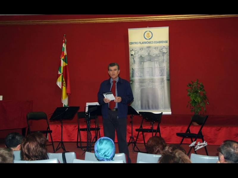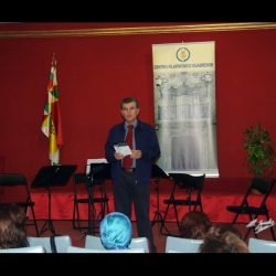 Después tomó la palabra para hablarnos del concierto y sus intérpretes Álvaro Ariza y comentó "que estaba contento por estar de nuevo en el C.F.E. agradeciendo la asistencia de los presentes. Como dijo Eustasio, los currículos eran muy extensos y por ello él los iba a compendiar hablando de sus compañeros".