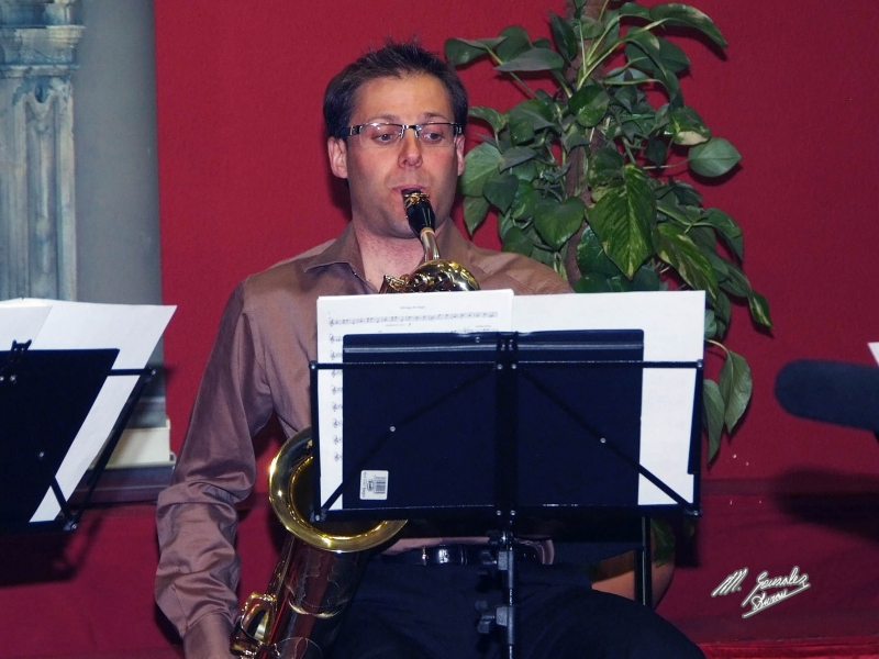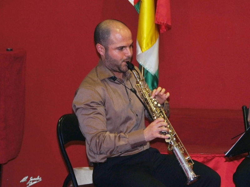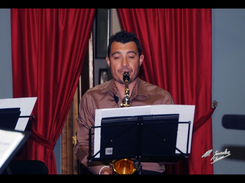 3. Manuel Ruiz Estrada, saxo tenor, gaditano de nacimiento es Profesor del Conservatorio Profesional de La Línea de la Concepción. Dijo de él que tiene una virtud excepcional en el mundo de los arreglos musicales y así todas las obras que vamos a escuchar son arreglos de Manolo.