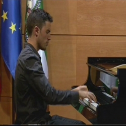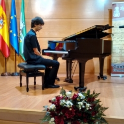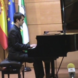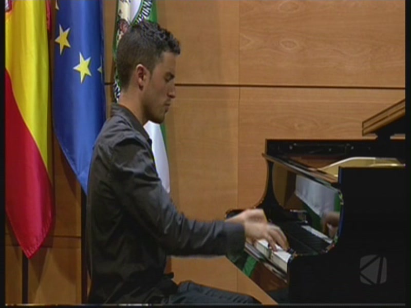 Este otro futuro gran pianista nos deleitó con el programa que señalo en que mezcló barroco, romántico y nacionalismo. Comenzó con el Preludio Coral "El Salvador de los gentiles ha llegado" sol menor BWV 659ª de J.S. Bach/W. Kempff. De D. Scarlatti, tres sonatas, k 9 en re menor, 377 en si m y 517 en re m. con su sonido característico a clave. R. Schumann puso en este concierto el precioso "Novelette op. 21 nº 8 en fa#menor. Siguió el conocido "Preludio y fuga" de Bach/Busoni y cerró con el espectacular "Corpus Christi" de la "Suite Iberia" de Albéniz que lo programó al estar en un Conservatorio "Isaac Albéniz". Magnifica ejecución de todas las obras que tocó, para un concierto de categoría.