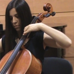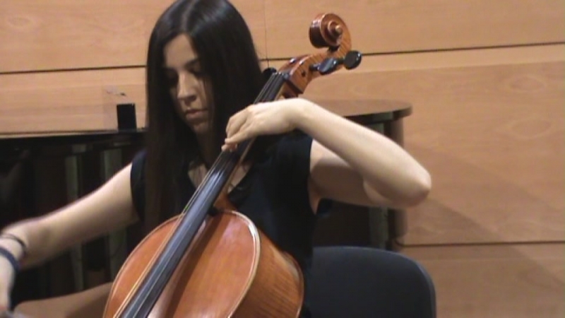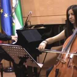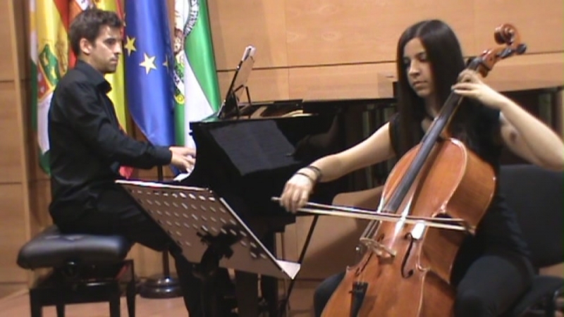Y el pasado 27 hubo el último. Un concierto de Violonchelo y Piano por un dúo de Pozoblanco, ambos nacidos en la misma población cordobesa. El profesor de piano Javier Alameda y la alumna de chelo del último curso de Grado Profesional del Conservatorio "Marcos Redondo", Cristina Amor. Nos hicieron un trabajo muy bien dicho, perfecto, aunque se quedó algo corto en tiempo. Pusieron en los atriles primero una Suite de J. S. Bach, la 3ª en Do Mayor para violonchelo solo (Preludio-Allemande-Giga), que la interpretó muy bien Cristina. Después el dúo hizo el 1er mov. del Concierto para chelo y orq. op. 33 en la m de Saint-Saens y por último la conocida Sonata para chelo y piano op. 5 nº 1 en Fa Mayor en su tiempo allegro, en la que ambos se lucieron.