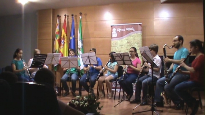 El día 13 el GRUPO DE CLARINETES formado por alumnos de la Escuela de la Banda de Música de Cabra, con un Concierto muy atractivo. Una serie de "piececitas" de conocidos compositores (Mozart, Schubert, Grundman, Albinoni, Debussy, Dvorak, J.Strauss (padre e hijo), S. Joplin, H. Mancini, J. Lenon, J.Q. Spider, Piazzola y Béla Kovacs) que sonaron deliciosas. Todos estuvieron bajo la dirección de su profesor Víctor Herrero Pareja, que tocaba el clarinete bajo. Las obras eran de diferentes estilos y períodos y habían sido trabajadas durante todo el curso.
