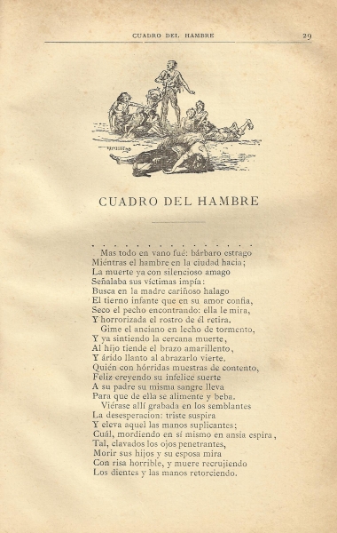 Un apéndice, con varias poesías, cierra las obras de este pasional lírico. No falta en esta adición "El Dos de Mayo", publicado el 2 de mayo de 1840 en El Labriego; son versos de homenaje a los héroes de la resistencia a las tropas de Napoleón. Interesantes resultan las ilustraciones que aparecen en diversas páginas, vinculadas con la dramática de los versos.