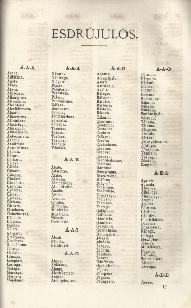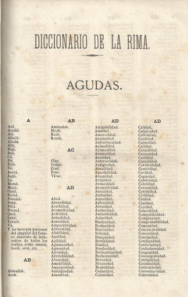 - Las voces van coladas por riguroso orden de principio y terminación, como igualmente las iniciales que señalan los consonantes al principio y en medio de las columnas.