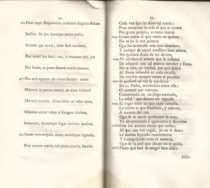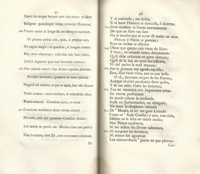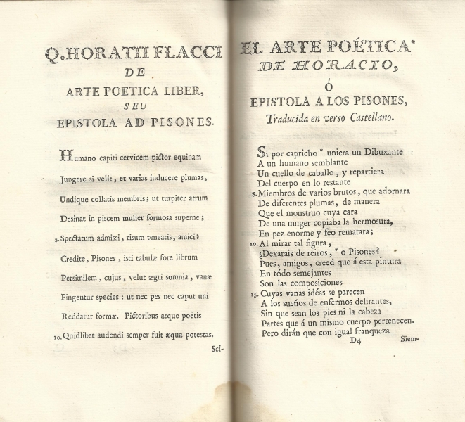 "El arte poética de Horacio o Epístola a los Pisones", traducida por Tomás de Iriarte (Madrid, 1777)