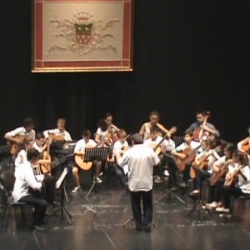 Y siguieron las guitarras y una gran Orquesta, arropada por tres chelos, nos hicieron tres melodías adaptadas que fueron llevadas muy bien por la batuta de Juan A. Carrillo, uno de sus profesores.