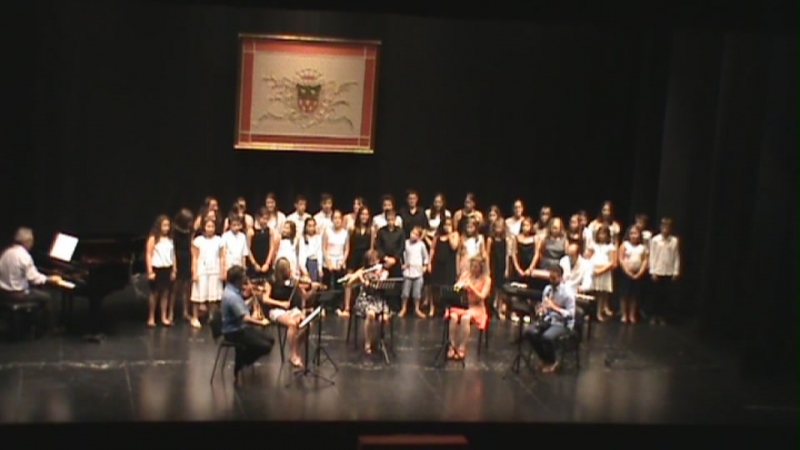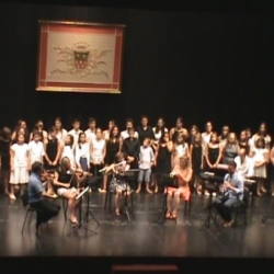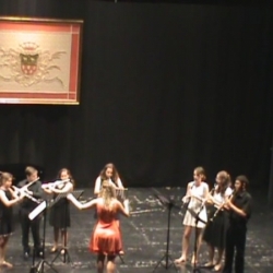 Un coro formado por todos los alumnos, dirigido por el pianista Francisco J. Serrano, con el acompañamiento de Julián García, en el magnífico piano del teatro (que es el que ha sido utilizado en sus actuaciones por los pianistas de los cursos) nos hizo una canción que como siempre ocurre sonó muy afinada (los chicos saben solfeo).