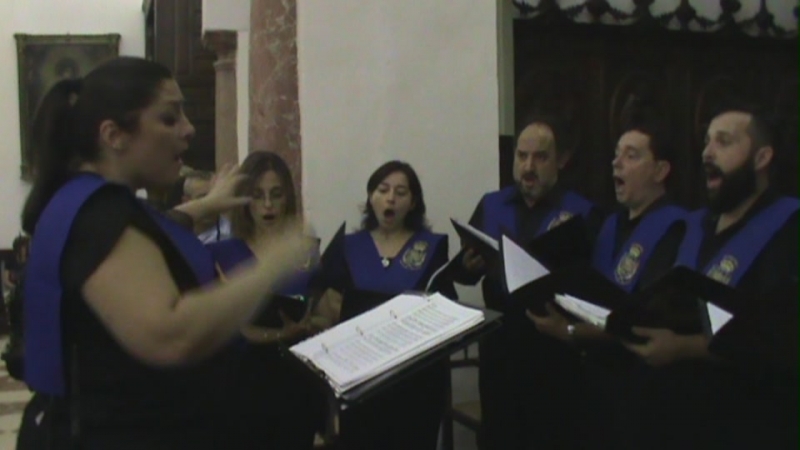 En la Exposición del Stmo. Sacramento cantaron el "Pange Lingua" gregoriano. Tras el Santo Rosario, en la lectura de la Novena, hicieron las "Coplas a Mª Stma. de la Sierra" y en la Bendición el "Tantum Ergo" también gregoriano. Finalizaron con la Salve tradicional.