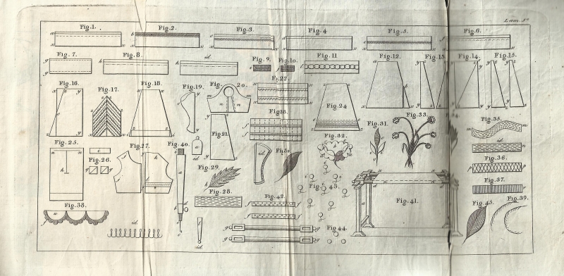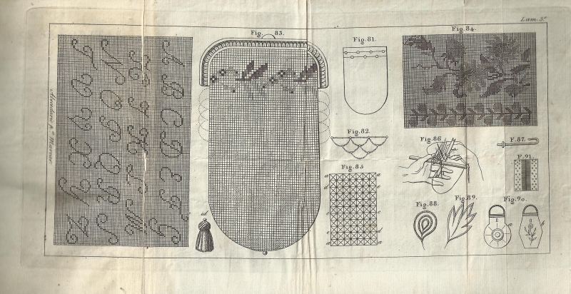 Es un trabajo traducido del francés por D.ª María Ana Poveda. Se incluye en él tres hojas plegables de láminas alusivas a su contenido que representan labores de aguja. Dado a la estampa en el año 1827 con licencia en Madrid en la imprenta que fue de Fuentenebro. En la portada indica el lugar para su adquisición: "Se hallará en la librería de Cuesta, frente á las Covachuelas". El volumen está encuadernado con pastas de cartón forradas de cuero siendo su estado de conservación excelente.