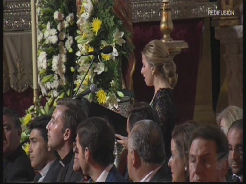 Después comenzó el desfile de las imágenes ante Mª Stma. de la Sierra, haciendo José Morales una pequeña historia de cada hermandad a su paso. El Sr. Obispo leyó pasajes de la Pasión de Cristo relativos al misterio que representaba cada uno de los "pasos". Unas peticiones y alabanzas a Cristo y a la Virgen junto al rezo del "Ave María" las dijo una voz deliciosa, toda música, Charo Villén Estevez, siguiendo la del Dúo "Stravaganza" con Isabel Valverde al violín y Clara Fernández al órgano. Sonó preciosa la música que hicieron, a modo de interludios, en una conjunción perfecta.