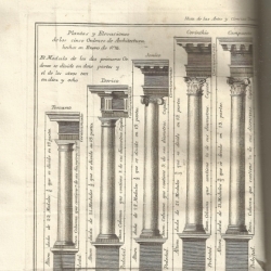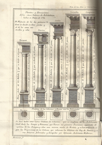 Cada uno de los tomos contiene dos libros. El primero trata de la agricultura, comercio, arquitectura, escultura, pintura y música. El segundo de la ciencia militar. El tercero de los gramáticos, filólogos, retóricos y sofistas. El cuarto de los poetas, historiadores y oradores. El quinto de los filósofos y sectas y de otras partes que dependen o tienen relación con la filosofía. El sexto y último de las matemáticas. Entre sus páginas se localizan dos hojas plegables con las siguientes ilustraciones: Plantas y elevaciones de los cinco órdenes de Arquitectura hechos en enero de 1776 y Campo de los romanos.