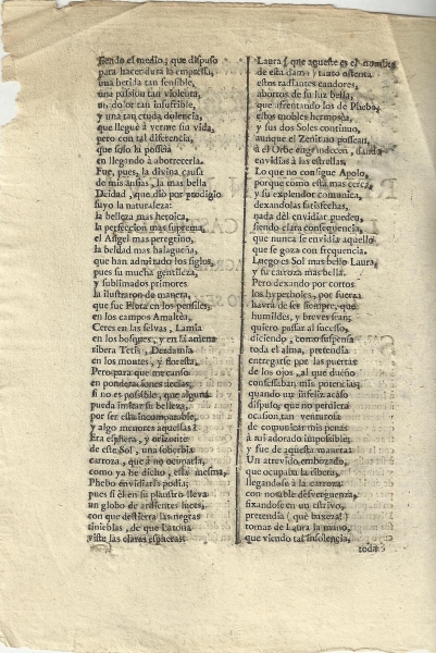 Nuestro ejemplar ha sido localizado entre las páginas de un libro por Manuel Gómez Camacho, en los trabajos de catalogación. Después, Antonio Arévalo Morillo comprobó la calidad del papel y descubrió al tras luz una marca de aguas. Eusebio Molina Herrero puso más conocimientos de imprenta a nuestro ejemplar. Las cápsulas del tiempo podemos definirlas como objetos encontrados; en nuestro caso en los libros de la Biblioteca Histórica Aguilar y Eslava. En todos los tiempos los libros han servido para guardar objetos que, a veces, han sido olvidados por sus propietarios o lectores, y que para nosotros cuando los descubrimos son como verdaderos tesoros. Siempre es un acontecimiento compartido el hallazgo. Los libros, a modo de "cápsulas del tiempo", actúan como recipientes que transmiten información de la vida del pasado a las generaciones futuras. Aunque sea por curiosidad, el volumen en el que se localizó esta cápsula del tiempo es: