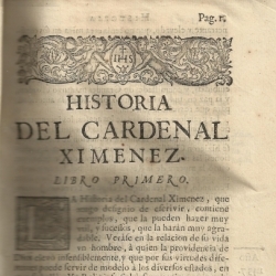 - El primero: "La historia del cardenal Ximenez, que tengo designio de escribir, contiene ejemplos que la pueden hacer muy útil y sucesos que le harán muy agradable...".