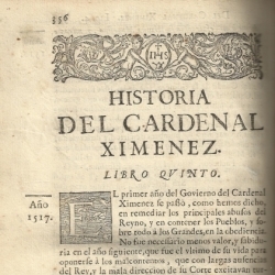 - El quinto (a partir del año 1517): "El primer año de gobierno del Cardenal Ximenez se pasó en remediar los principales abusos del Reino, y en contener los pueblos, y sobre todo a los grandes, en la obediencia".