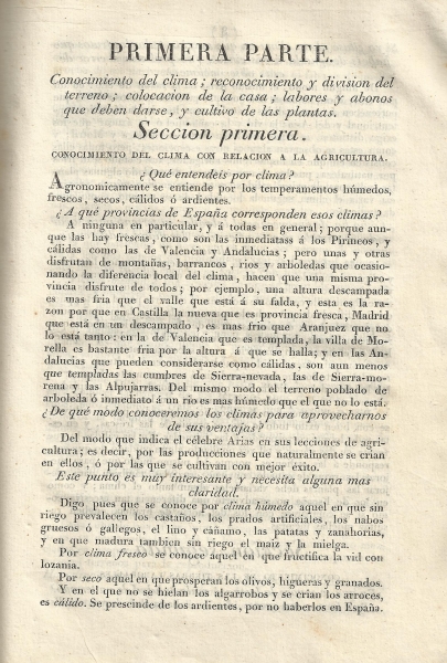 Cartilla agraria, o sea La práctica de la agricultura y de la ganaderia, según los autores más clásicos de estos tiempos / dispuesta por el coronel José Espinosa.-- Madrid : [s.n.], 1822 (Leon Amarita)