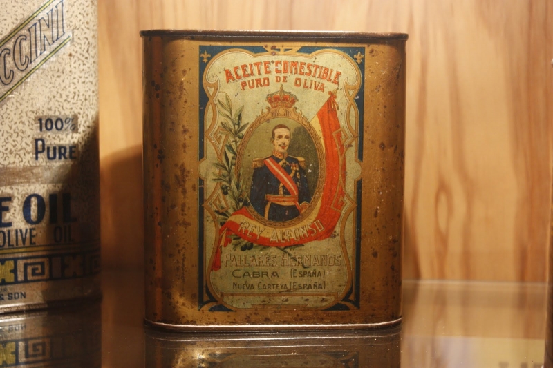 Sistemas romanos, cisternas en el subsuelo, cableado eléctrico original, mecanismos y objetos curiosos conforman una muestra permanente que recomendamos visitar y que forma parte, por méritos propios, del patrimonio museístico de Cabra y del conjunto de nuestra comunidad autónoma. Destaca la colección de latas de aceite que también se recuperaron de la pérdida y que ahora se pueden disfrutar, junto a los fotolitos en piedra de algunas de ellas y junto a una recientemente recuperada máquina de litografíar que espera su restauración para ampliar los contenidos del Museo del Aceite - Molino Viejo de Cabra. También la historia de esta fábrica de envases propia, en el grupo Pallarés, tiene su anécdota que no queremos dejar de mencionar. Cuando en 1917, en plena Guerra Mundial, algunos empresarios alemanes se arruinan, uno de ellos era el encargado de suministrar los envases de hojalata a Pallarés. Al no poder hacer frente a sus pagos, el comercial alemán le ofrece como contraprestación la maquinaria que viene a Cabra y se instala en la antigua Casa del Ancla, creándose así la fábrica de envases que llegó hasta los últimos años de la firma Pallarés. Pues bien, la colección de latas a la que hacemos referencia, fue recuperada y pudo conservarse casi tal y como se exponía en la antigua fábrica.