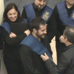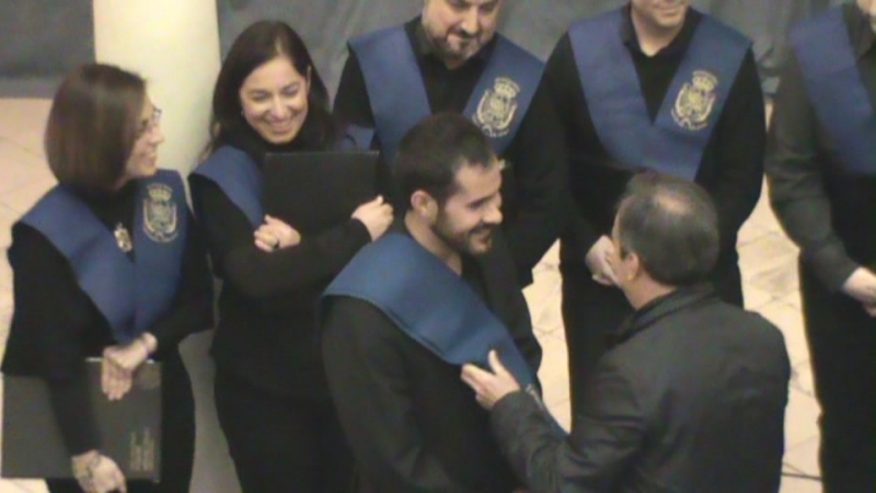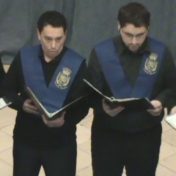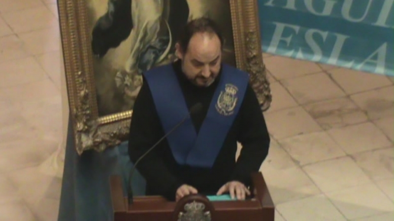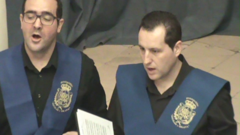 Tras finalizar la parte musical, Salvador Guzmán, Presidente de la Fundación "Aguilar y Eslava" les impuso la beca de la misma al pianista-organista y a un tenor del coro, recientemente incorporados.