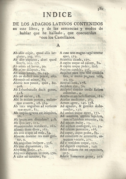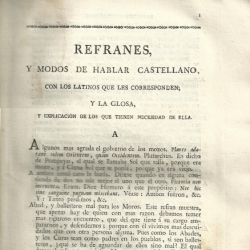 Refranes, y modos de hablar castellanos : con los latinos que les corresponden, y la glosa, y explicación de los que tienen necesidad de ella : con un indice de los adgios latinos, á los quales corresponden los castellanos, que van puestos en el libro por el órden de A.B.C. / compuesto por el lic. Gerónimo Martin Caro y Cejudo.-- Madrid : en la Imprenta Real, 1792.