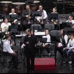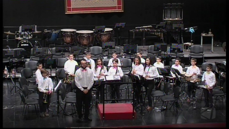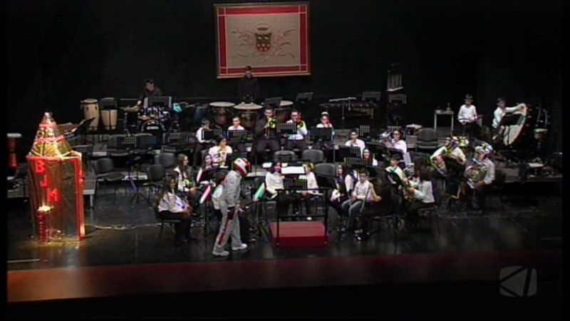 Después la BANDA INFANTIL, hermana pequeña de la Juvenil, compuesta por alumnos de 1er curso de la Escuela de Música de la Asociación, que comenzaron sus estudios musicales en septiembre, fue llevada por el Director Antonio Moral e interpretaron unas cortas piezas de carácter escolar que gustaron mucho, "Roling Along" (Tradicional), "Campanita de lugar" (Popular) y el navideño "Jingle Bells" (T.S. Pierpont). Los niños lucían unas pajaritas de colores en sus camisas blancas.