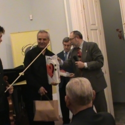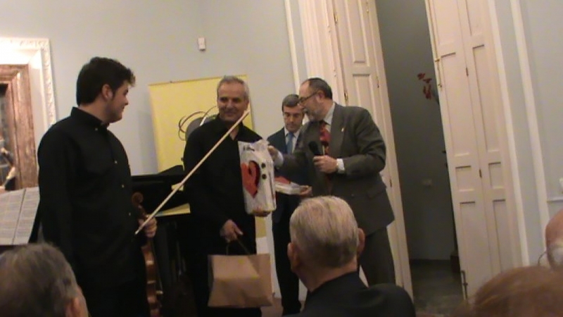 Hubo muchísimas palmas y el Director Cultural agradeció el concierto memorable que habíamos presenciado e hizo entrega de unos obsequios a los concertistas, tanto de la Fundación, como de la Consejería de Educación de la Junta de Andalucía y Concejalía de Cultura del Ayuntamiento de Córdoba, organismos colaboradores. También entregó a Carlos un cuadro recuerdo en agradecimiento por su actuación.