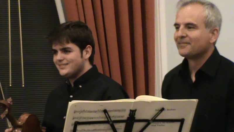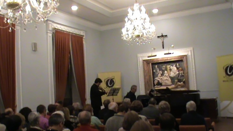 Como era de esperar el concierto se desarrolló en toda su extensión de manera excepcional, altísima ejecución y exhibición de los dos artistas. Pese a la advertencia del Sr. García Uceda, tras el 2º mov. Andante tranquilo-vivace de la Sonata de Brahms, en una magnífica actuación de Carlos, con una ejecución espléndida, incluidos los "pizzicatos", el público irrumpió en bravos y aplausos.