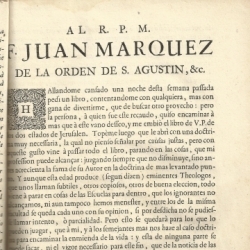 El teólogo Juan Márquez nació en 1565 en Madrid, ingresando en 1581 en la Orden de San Agustín en el Convento de San Felipe el Real de la capital madrileña. Se formó en los estudios de la Orden en Toledo. En la Universidad de Salamanca llegó a ser profesor al ganar la cátedra de Vísperas de Teología en 1607. Ocupó los cargos de predicador en la Capilla Real y censor del Santo Oficio. El insigne agustino murió el año 1621 cuando era prior de la casa de su Orden en Salamanca.