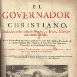 "El governador christiano, deducido de las vidas de Moysen y Josué, príncipes del pueblo de Dios" por fray Juan Márquez (Amberes, 1664)
