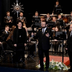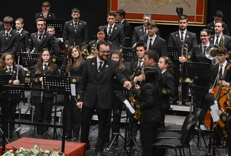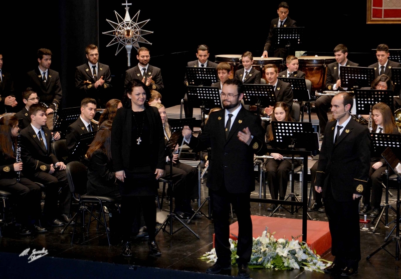 Y continuó la programación con "Encarnación Coronada" (1994) de Abel Moreno, que la hizo para la coronación de la Virgen sevillana Ntra. Sra. de la Encarnación. Marcha alegre y rítmica con buenas cornetas. Lleva como "saetilla" una parte vocal, el "Ave María", que fue interpretada por el dúo Víctor Herrero Pareja (tenor) y Carolina Garrido (que actuaba como soprano). El público se puso en pie, los aplaudió y también se oyeron bravos. Este "Ave María" se escucha en determinados lugares, cantado por el público que presencia una procesión en la que se interpreta esta marcha.